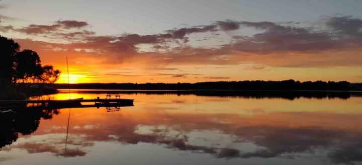 Chata s vlastným mostíkom a loďou v Sjælsø