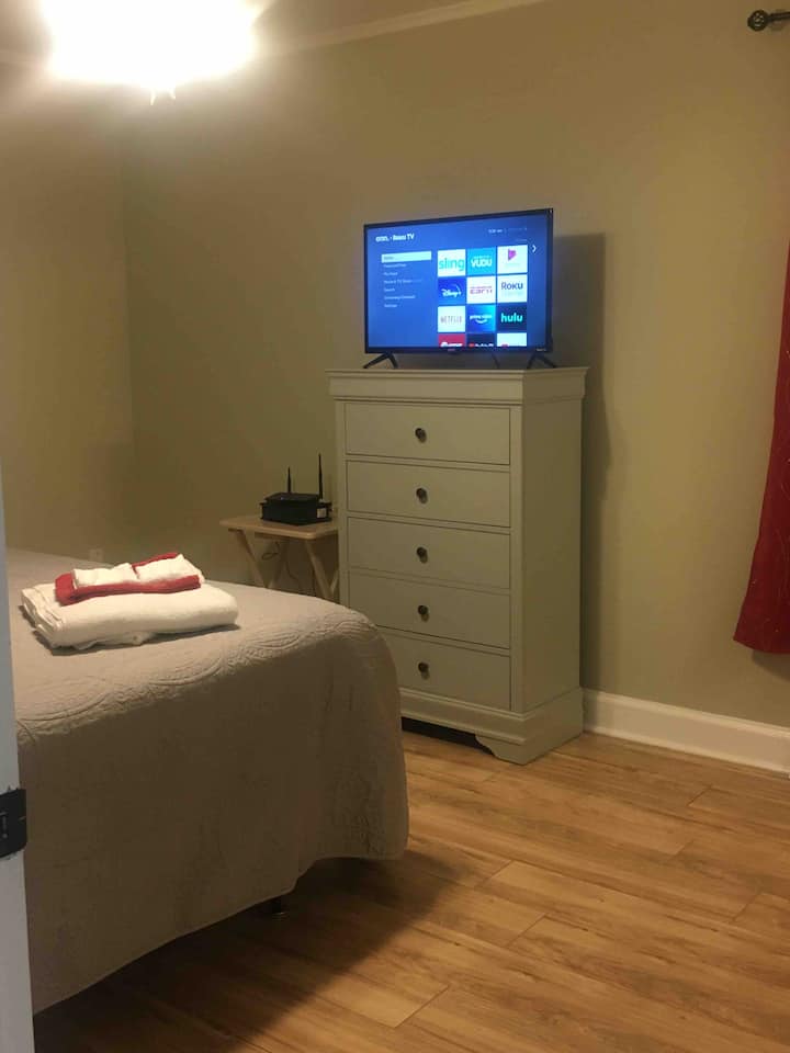 Izba s Wi-Fi, ktorá je vhodná na prácu.
