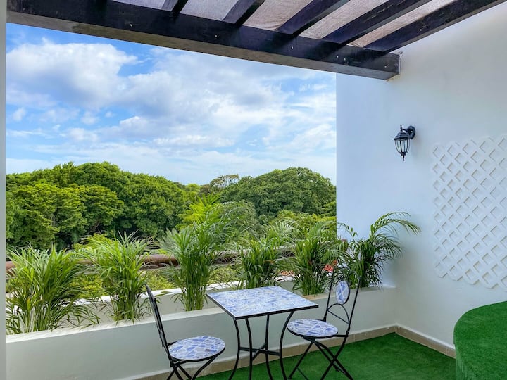 Únik pri pláži so strešným bazénom a terasou