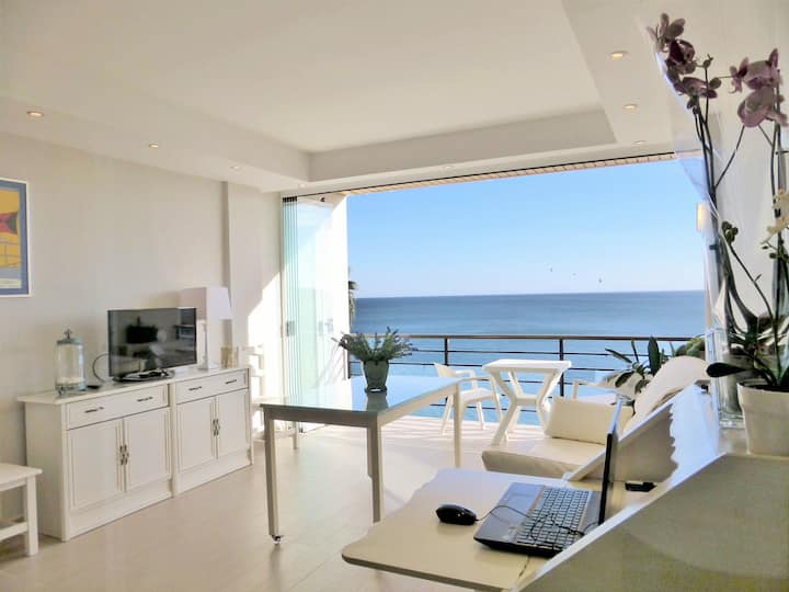 Apartmán sa nachádza na útese medzi plážami Carihuela a Bajondillo, odkiaľ si môžete vychutnať pokoj domova a nádherný výhľad. K dispozícii je však súkromný výťah/výťah priamo na pláž/promenádu a ďalší do centra mesta. Takže ste priamo na pláži alebo v centre bez schodov.