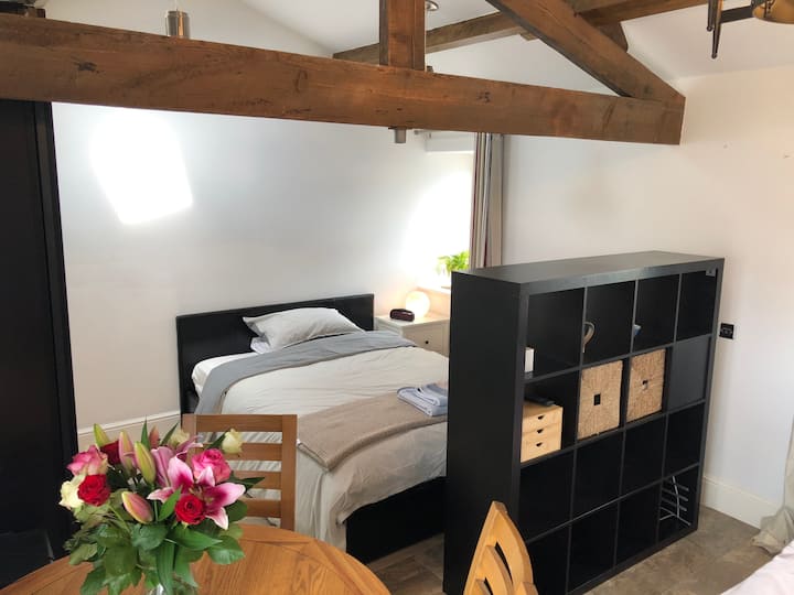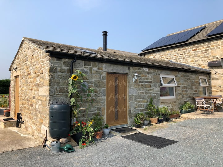 Stajne na farme pri jazere, neďaleko Harrogate.