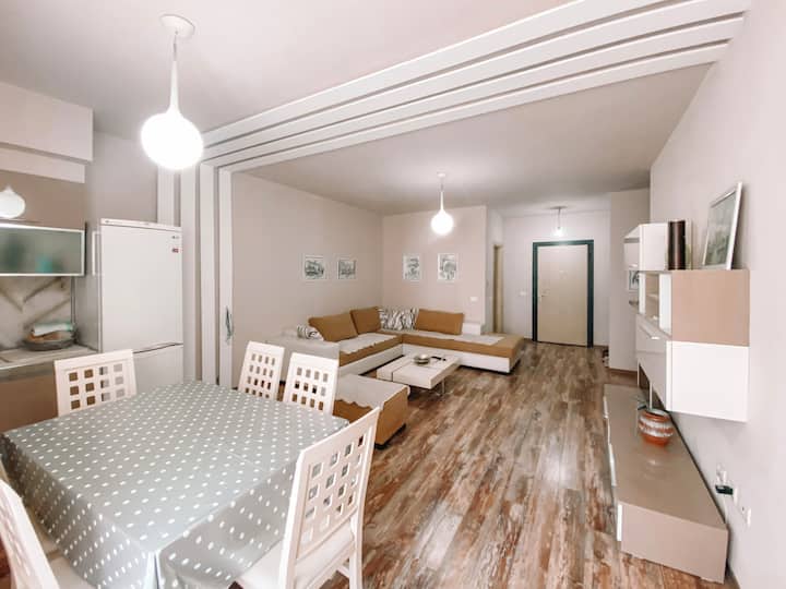 Útulný a priestranný apartmán s 2 spálňami v Shëngjine.