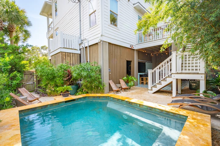 Náš najnovší dom na pláži na Red Sunset je pokojnejší priestor s krásnym výhľadom, vánkom a relaxáciou. Nachádza sa na západnom konci ostrova Folly Island, kde sú pláž a prístav vzdialené jeden blok chôdze. Pláž na tomto konci ostrova je pokojnejšia ako rušný východný koniec, na ktorom sa nachádza náš dvojdom. Oddýchnite si s knihou v jednej ruke a nápojom v druhej! Bazén príde do tejto nehnuteľnosti do konca roka, ak nie skôr. Bazén bude vyhrievaný počas chladných zimných dní.