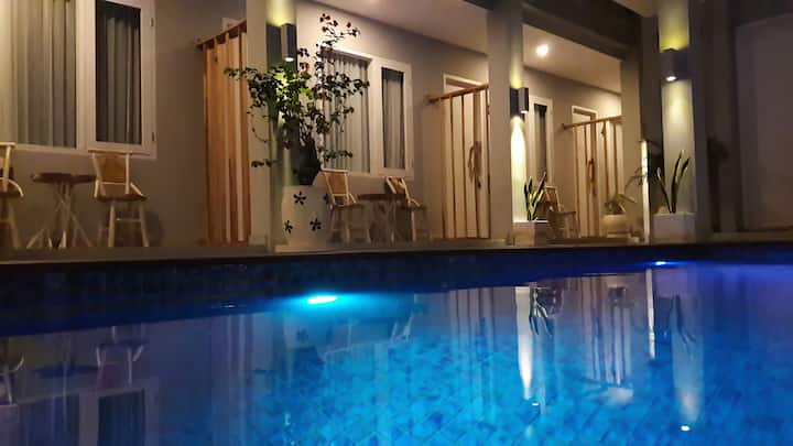 Mantra Gili – izba s manželskou posteľou a výhľadom na bazén