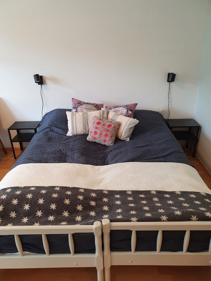 1 menšia manželská posteľ, 1 matrac na podlahe