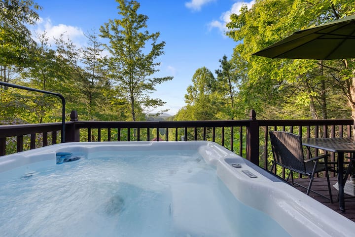 Ponorte sa do úchvatného šarmu Smoky Mountains - výhľad tak ohromujúci, že to vyzerá ako sen. Začnite svoje rána parenou šálkou kávy, ☕ keď nad hmlistými vrcholmi vychádza zlaté slnko a naplní horizont teplom a pokojom. Keď sa deň mení do súmraku, oddýchnite si vo vírivke a nechajte živé odtiene západu slnka v Smoky Mountain rozpustiť vaše obavy. Keď padne noc, pozerajte sa na baldachýn s trblietavými hviezdami✨, orámovaný drsnou siluetou hôr. Každý okamih je tu majstrovským dielom, ktorý ponúka nezabudnuteľný únik do najlepších umeleckých diel prírody. 🌲🏔️
