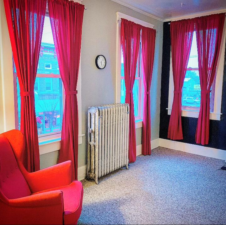 Klasická, historická, luxusná. Táto ikonická budova postavená v roku 1903, sa nachádza v malebnom centre mesta Wapakoneta (skutočné živé mesto Mayberry!), je domovom nášho korunného klenotu #7. Apartmán s dvoma spálňami s obývacou izbou, pracovňou a jedálňou má výhľad na naše malebné mesto s dňami plnými nákupov a stravovania! Veľké stropy, dobový pôvodný krb, obrovské okná a najkrajšia vintage kuchyňa určite urobia váš pobyt, či už je to práca alebo potešenie, jedna z najlepších, aké ste kedy mali!