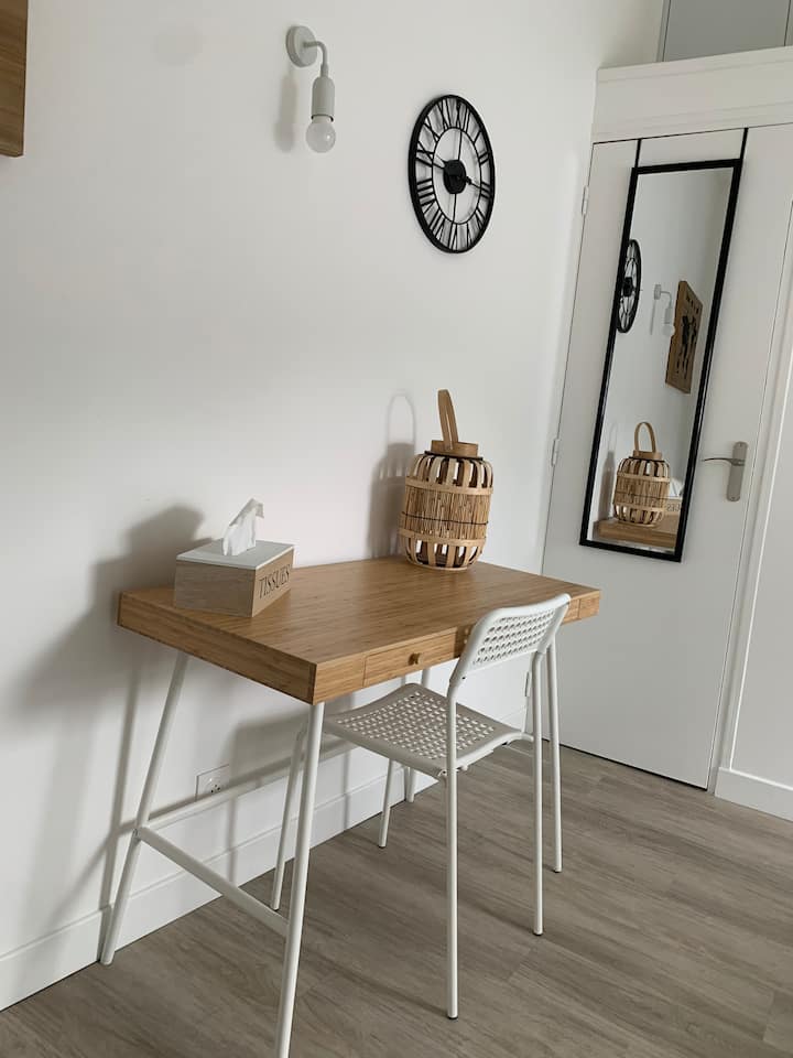 Izba s Wi-Fi, ktorá je vhodná na prácu.