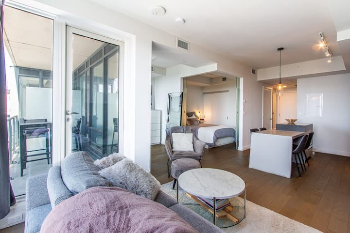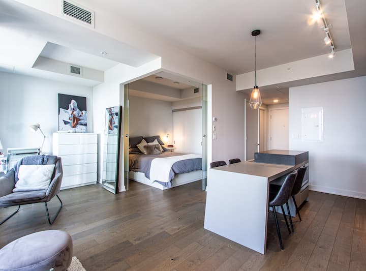 A2 – Moderný 1-lôžkový kondomínium + vnútorné parkovanie v centre mesta MTL