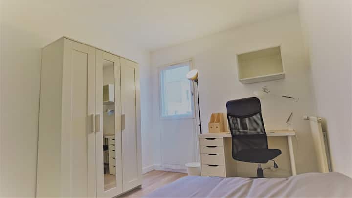 Izba s Wi-Fi, ktorá je vhodná na prácu.