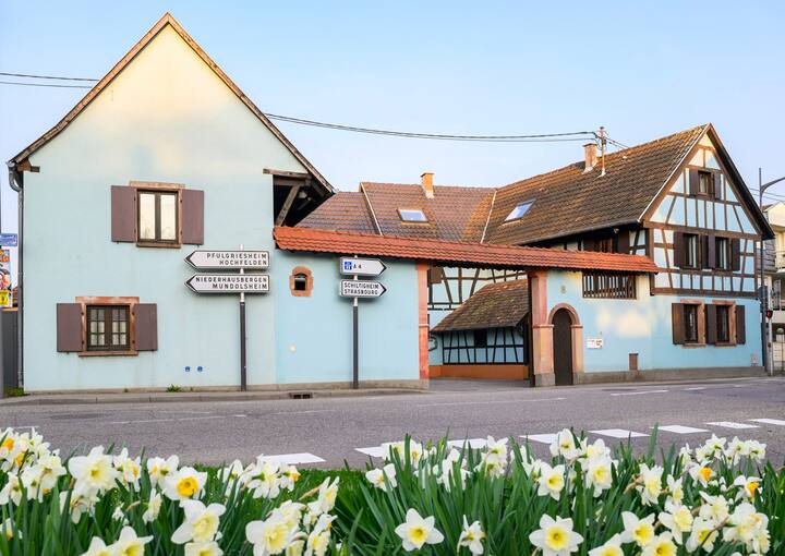 Nous serions très heureux de vous accueillir dans notre ferme alsacienne transformée en gites, toute proche de Strasbourg ! Nos deux gites peuvent accueillir chacun 4 à 6 personnes et sont tout équipés.