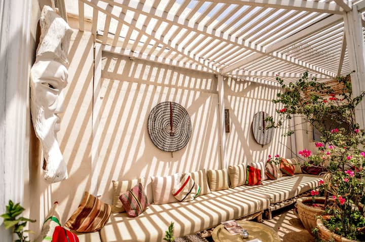Je to veľký tradičný dom s centrálnym nádvorím. Na streche sa nachádza bazén (7 m x 3 m) so soláriom, v blízkosti kúpeľnej zóny a obývacej izby s reštauráciou a barom.