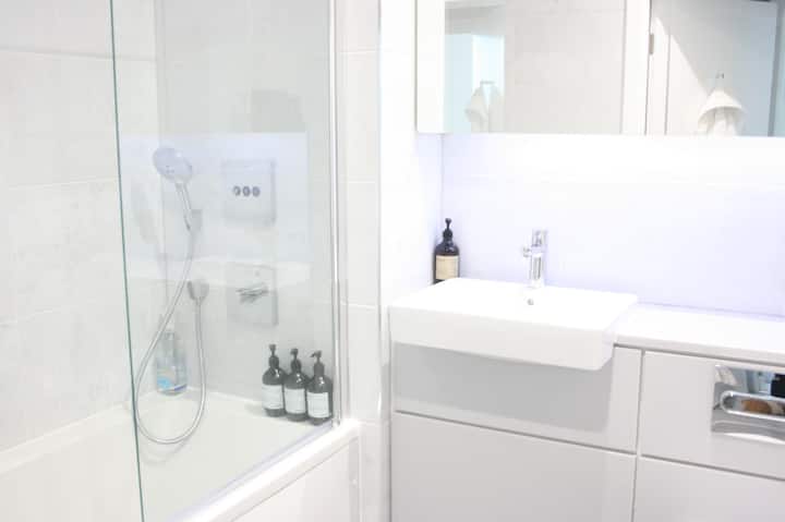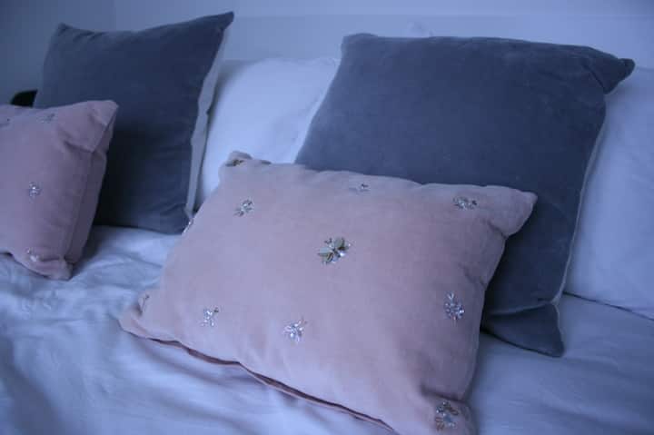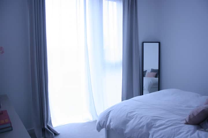 Spálňa s manželskou posteľou (a vlastná kúpeľňa) v luxusnom byte