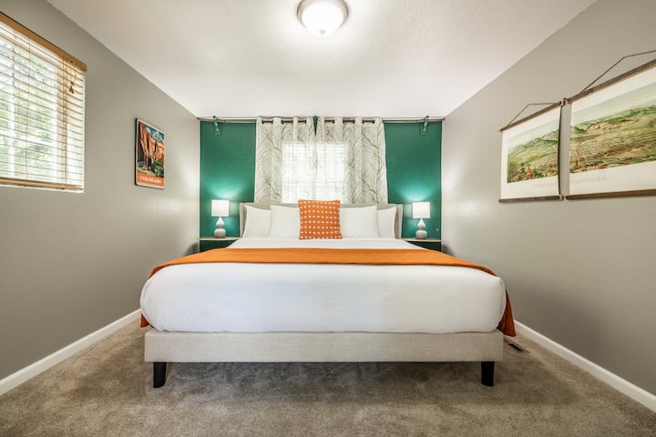 Vitajte v dome na strome! Tento centrálne umiestnený dvojdom sa nachádza v blízkosti centra mesta, ale v pokojnej štvrti priamo na chodníku Pikes Peak Greenway Trail. V tomto bývaní s plne oploteným bočným dvorom budete mať úplné súkromie. Oddýchnite si na dvore po dni dobrodružstva, oddýchnite si a vychutnajte si streamovanie pomocou televízora Roku, potom pohodlne spite, pretože každá spálňa má manželskú posteľ veľkosti King. Dúfame, že budete mať čo najpríjemnejší a najpohodlnejší pobyt, a my sme pripravili bývanie, aby ste mali všetko, čo potrebujete, kým ste tu. (Číslo povolenia na krátkodobý prenájom: STR-1714)