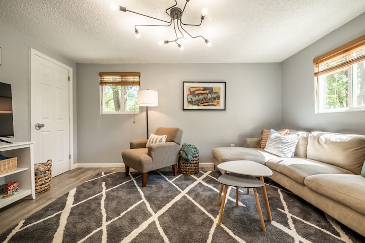 Vedľa kuchyne nájdete útulnú obývaciu izbu, kde si môžete oddýchnuť a oddýchnuť si po dlhom dni objavovania. Obývacia izba sa môže pochváliť televízorom Roku a miestnymi kanálmi, ako aj hrami a knihami, ktoré vás zabavia. K dispozícii je pohodlná sekčná pohovka s ležadlom, lampa na čítanie a hniezdenie konferenčných stolíkov.