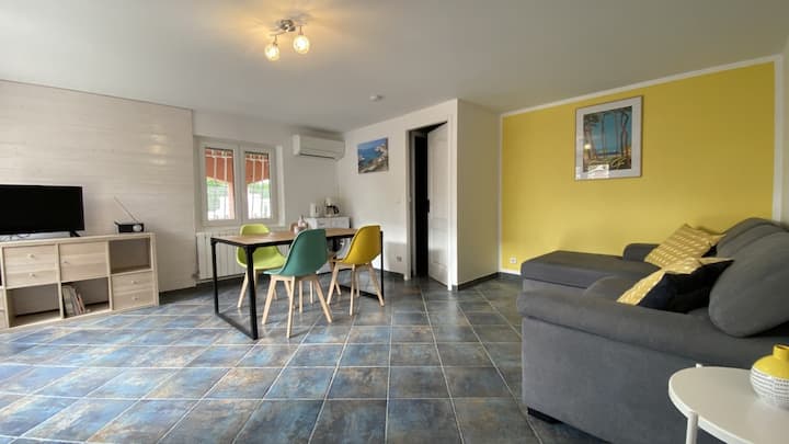 Som Laure. S mojím manželom Alexandrom ponúkame na prenájom zariadený byt v našom dome v Saint-Cyr-sur-Mer.