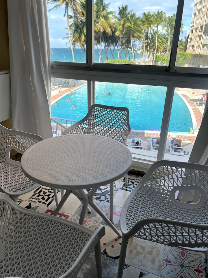 * Prestavané v júni 2023. Moderný apartmán s bazénom v srdci Condado.. Plne vybavený a zariadený. Vysokorýchlostné Wi-Fi pripojenie a nové klimatizácie. Toto je skutočný plážový apartmán.