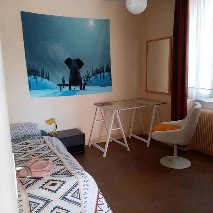 Izba s Wi-Fi, ktorá je vhodná na prácu.
