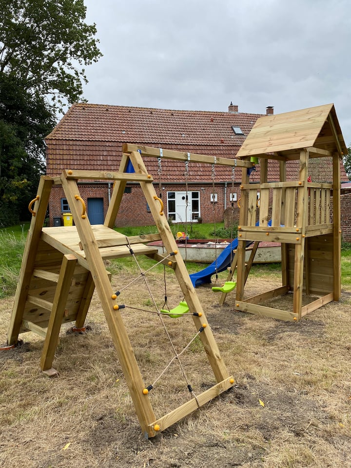 Som Martje, manželka Olafa, ktorý v priebehu rokov vrátil tomuto krásnemu domu jeho dušu. S tromi synmi žijeme v Eiderstede a milujeme rozľahlosť a prírodu. Na našich vlastných cestách som sa vždy čudoval, prečo boli niektoré dovolenkové domy také neútulné a niekedy aj opotrebované. Milujem ľudí, kontakty a krásne veci a v určitom okamihu sa vo mne prebudila túžba stať sa hostiteľkou. Teraz sme si to splnili s našimi krásnymi izbami a dúfame, že sa do tohto malého miesta na zemi zamilujete rovnako ako my.