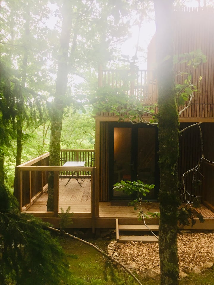 „Rozkošný zrub v zalesnenej oblasti.“
