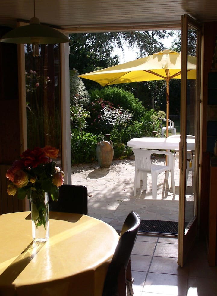 byt na prízemí s výhľadom na záhradu v pokojnej lokalite v blízkosti pláže