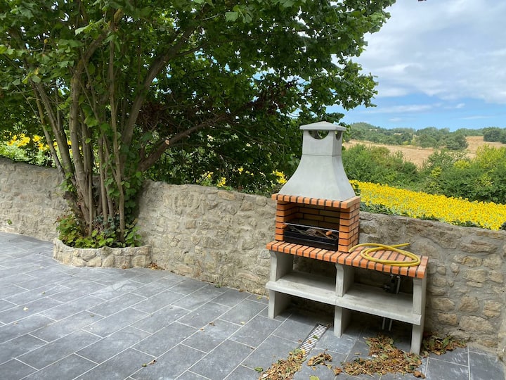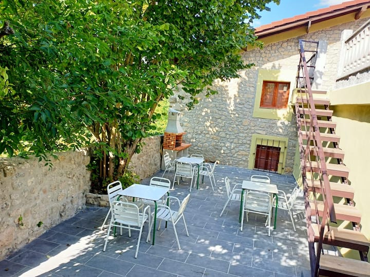 príjemný vidiecky dom so šiestimi izbami, 3 kúpeľňami, z ktorých jedna má vírivku, kuchyňu a veľkú jedáleň. txoko s kuchyňou, kúpeľňou a dvoma terasami s grilom.