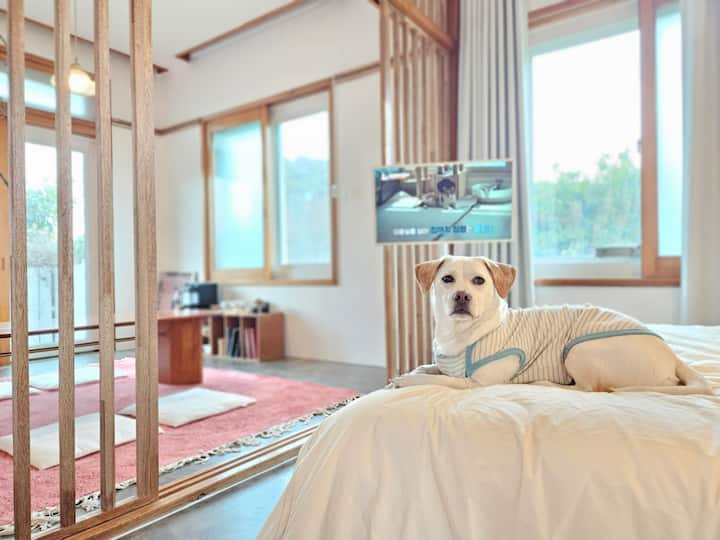Jeju, emocionálny priestor pre vás/Bezplatné ubytovanie so psom (až 2 psy do 15 kg)/Dvor pred plotom