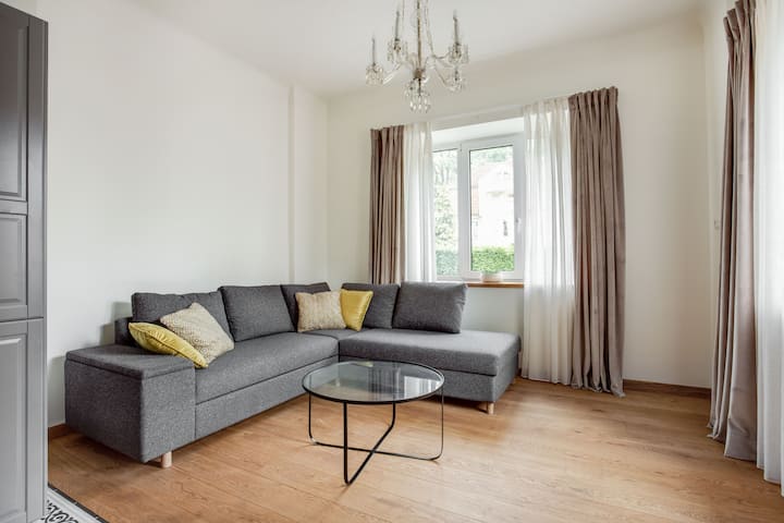 Svetlý a útulný apartmán s 1 spálňou v centre Kaunasu