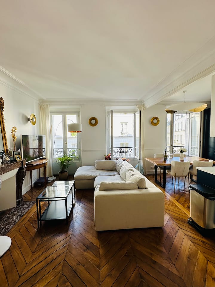 Ja a môj manžel žijeme v tomto krásnom apartmáne neďaleko la Place des Vosges v ikonickej oblasti Le Marais.