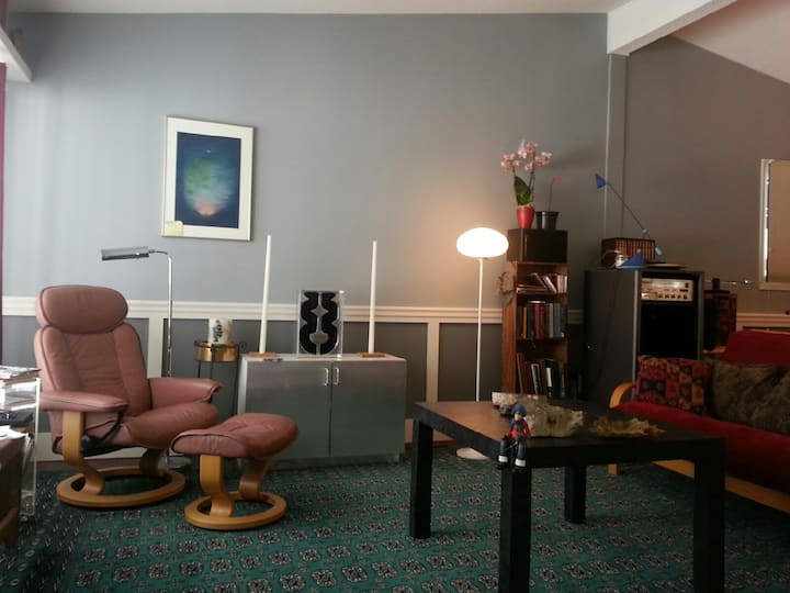 Izba s Wi-Fi, ktorá je vhodná na prácu.
