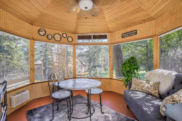 Len pár krokov od predných dverí nájdete klenot objektu: plne uzavretý, zariadený altánok s oknami všade navôkol. Vstúpte cez posuvné sklenené dvere a nájdite svetlý, flexibilný priestor vhodný pre širokú škálu aktivít. Užite si pohodlnú pohovku, kaviarenský stôl s posedením pre dvoch, stropný ventilátor a barový vozík. Nechajte slnko zaplaviť oknami alebo zatiahnite žalúzie pre súkromie. Nakoniec si prečítajte túto knihu alebo si vytvorte vlastnú ochutnávku vín. Izba je vaša.