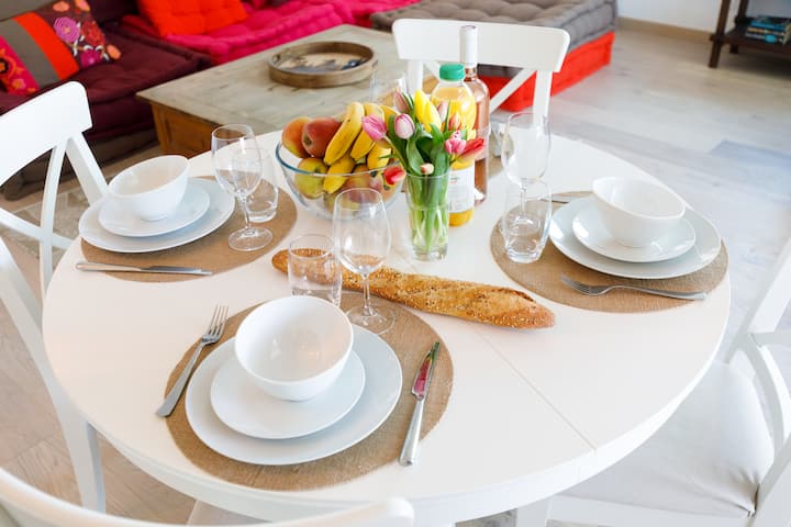 Krásny apartmán, terasa, parkovanie. Výhľad na prístav
