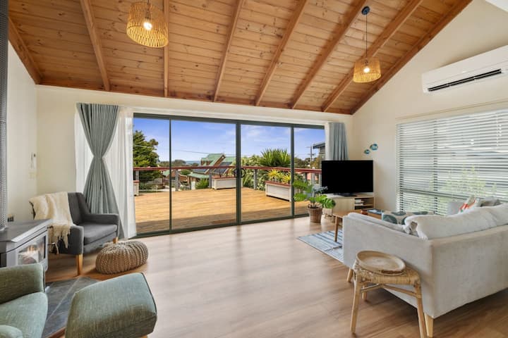 Vitajte v tomto slnečnom plážovom dome Jána Juca, kde výhľad na oceán, priestranné terasy a svetlé interiéry vytvárajú dokonalé útočisko na pobreží. Toto svetlé bývanie s 3 spálňami sa nachádza na vynikajúcom mieste a má dve veľké terasy, zabezpečený dvor a otvorený obývací priestor s útulným krbom na drevo. Vďaka ľahkému prístupu na pláž Jan Juc, neďalekých kaviarní a miestnych turistických chodníkov je ideálnym útočiskom pre rodiny, skupiny a dokonca aj domáce zvieratá. Oddýchnite si na slnku, vychutnajte si morský vánok a oddýchnite si v tomto plážovom útočisku.