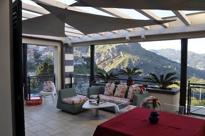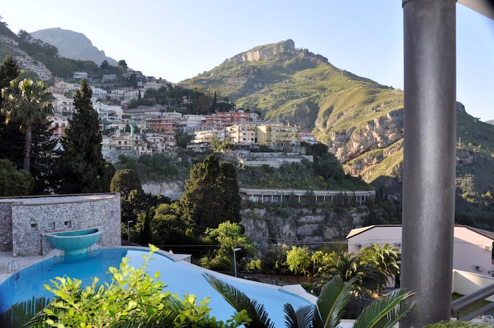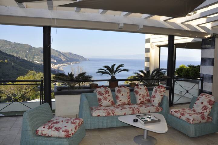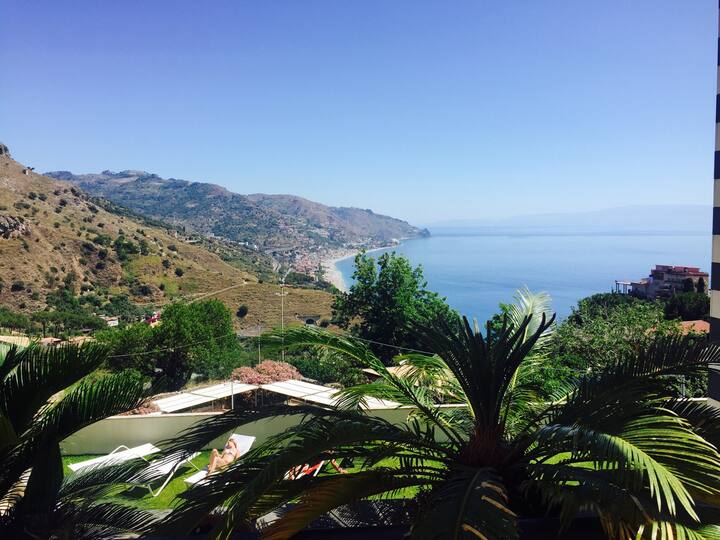 Apartmán s otvoreným výhľadom na pobrežie Taorminy.
