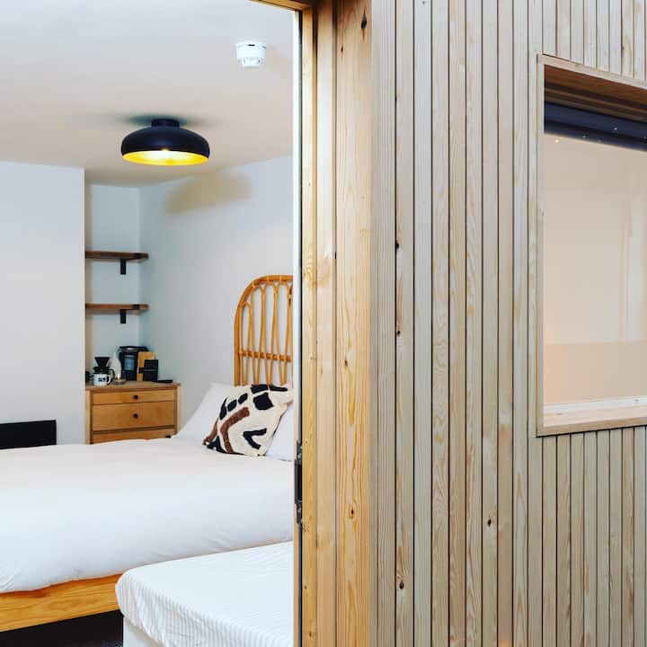 Izba CoalShed King s oddelenou izbou s poschodovou posteľou. Izba 1