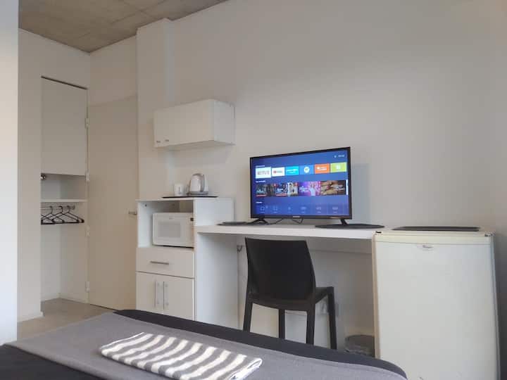 Izba s Wi-Fi, ktorá je vhodná na prácu.