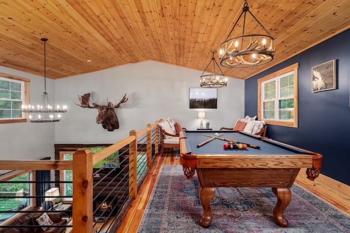 „Jednoducho si to rezervujte! Súkromné ubytovanie, biliardový stôl, vírivka, dokonale čisté, pohodlné postele/pohovky, skvelý stôl na jedenie/hranie hier. Mali sme najlepší víkend! Cítite sa tak ďaleko od všetkého, len 2 míle od mesta s roztomilými obchodmi/kaviarňami a priateľskými ľuďmi! Na 100 % by som sa tu ubytoval znova – jedno z najlepších miest, kde som sa kedy ubytoval! Nepochybujte o tom, ak je k dispozícii, rezervujte si to!“ ~Corrine, 5-hviezdičkové hodnotenie hostí