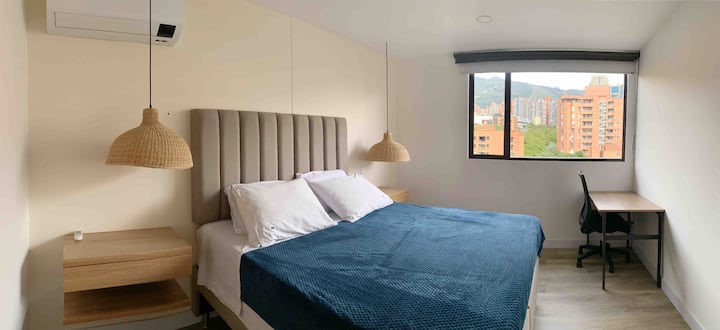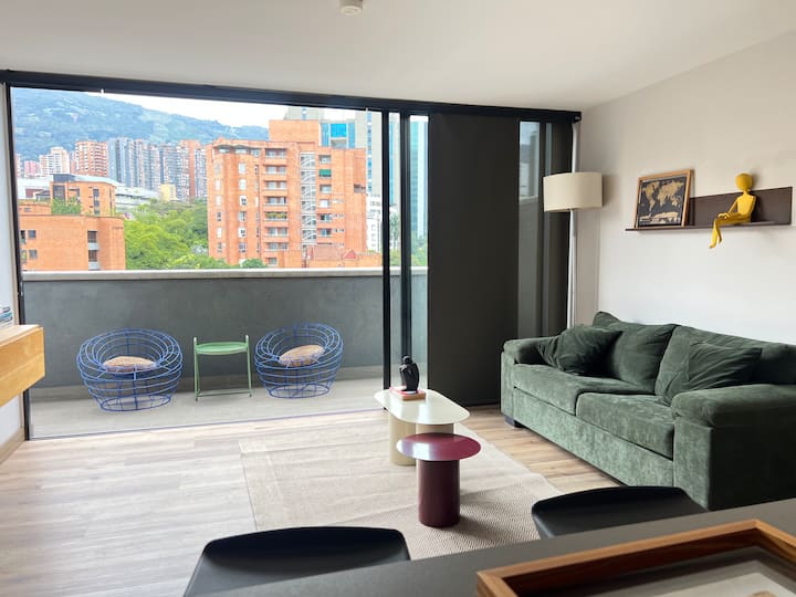 Útulný apartmán Poblado 1BD s klimatizáciou, balkónom a posilňovňou