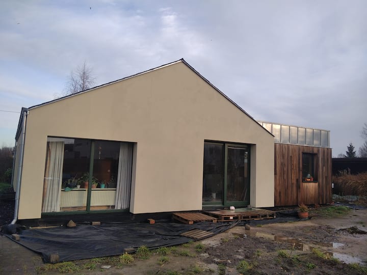 bývam v jednopodlažnom dome a všade okolo záhrady s množstvom divokých kvetov, ktoré som v priebehu rokov zasial. Jeden dom je svetlý s veľkými oknami . Tichá ulica, ale zároveň blízko centra so supermarketom, pekárňou a množstvom reštaurácií. Neďaleko sa nachádza pekný park "d 'Ursel" s hradom. Bývam v blízkosti rieky Schelde. Z domu je k dispozícii veľa možností na bicyklovanie a cyklistiku. Majte dva bicykle navyše.