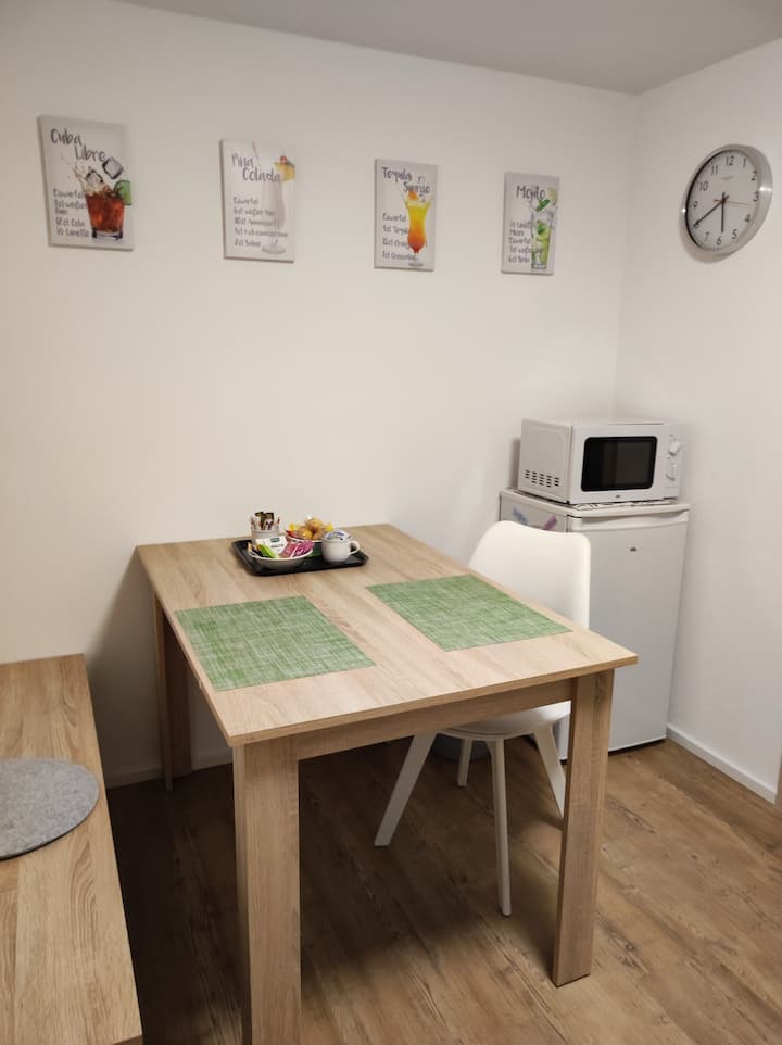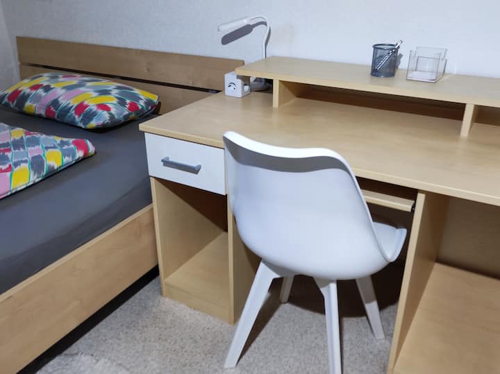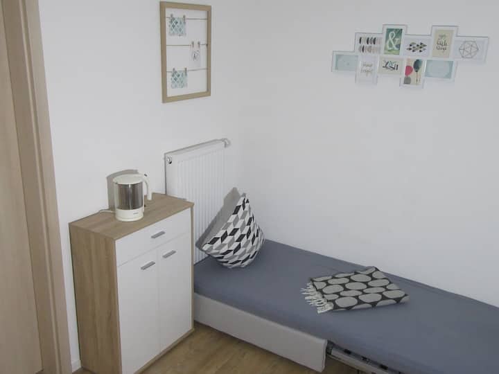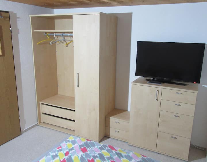 s manželom žijeme v regióne Ellwangen, Dinkelsbühl, Nördlingen. Keď naše deti vyrastú a odsťahujú sa, zdieľame náš útulný a tichý dom s ľuďmi, ktorí cestujú.