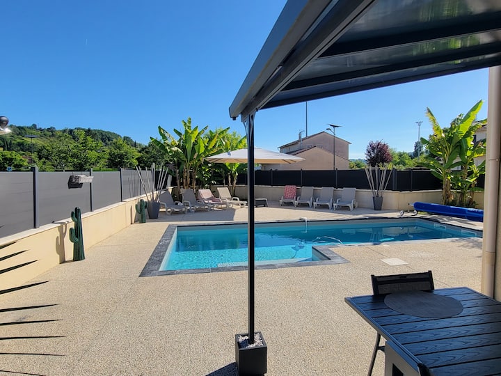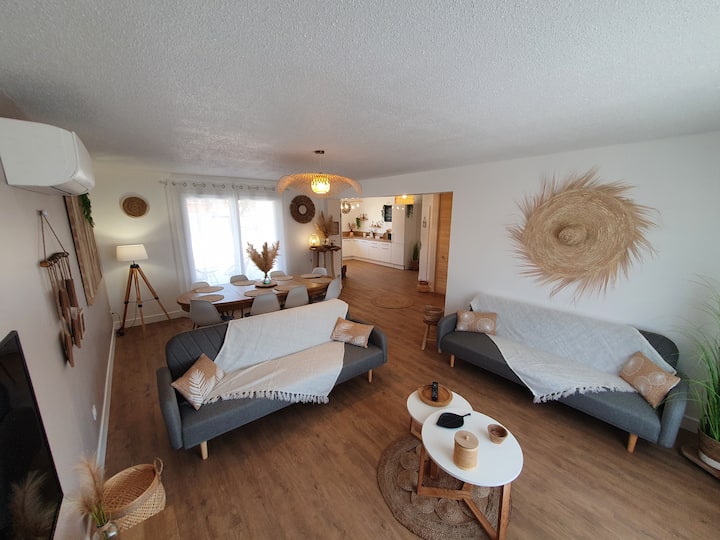 Vitajte vo vile des Oliviers, v blízkosti všetkej občianskej vybavenosti 5 km od Agen tejto vily s rozlohou 130m ² v obytnej štvrti, ktorá nie je prehliadnutá vedľa športového komplexu, vám ponúka pohodlie a pokoj.