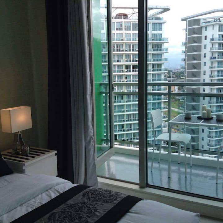 it is one bedroom 29sqm that occupies 2-4persons only and kids are counted to the headcount. it has a good view of the beach wave pool. unit can accommodate short stay or long stay. for long stay guests -- meralco, wifi. and water are NOT included to the rent and the guest would need to pay them separately.