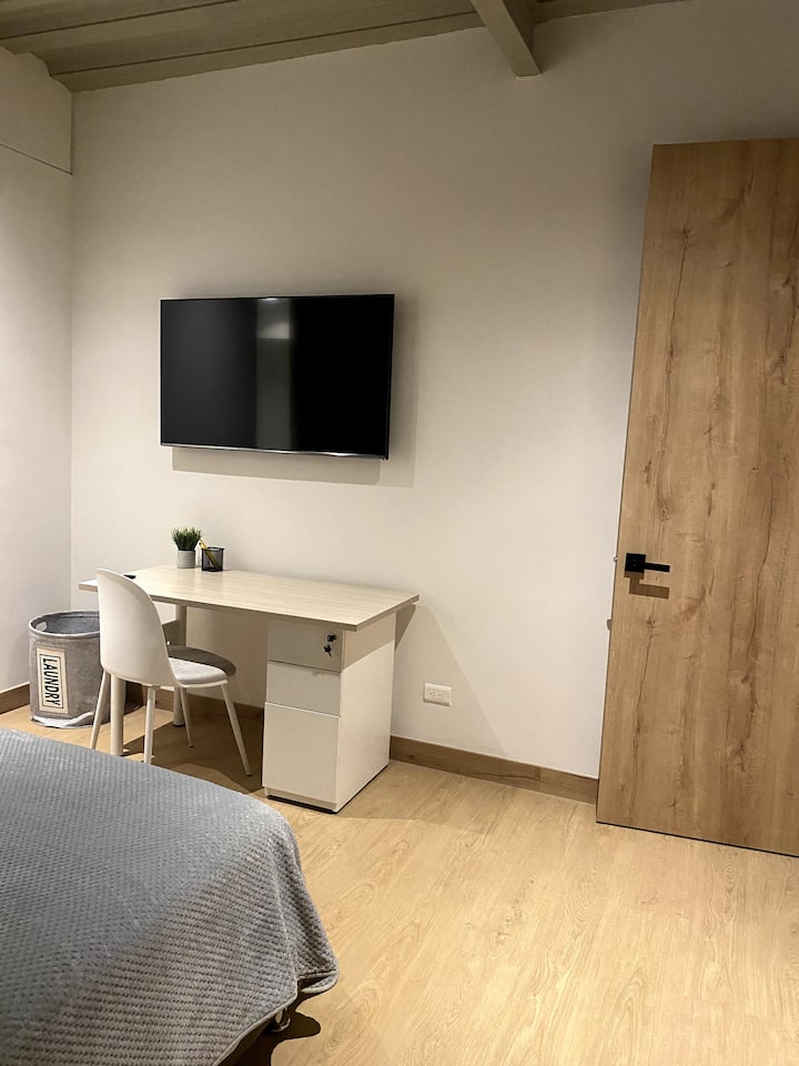 Izba s Wi-Fi, ktorá je vhodná na prácu.