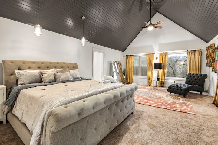 (2) Naša druhá spálňa je vybavená manželskou posteľou King, komorou, 55-palcovou televíziou Samsung Smart TV, vlastným posedením a spoločnou kúpeľňou.