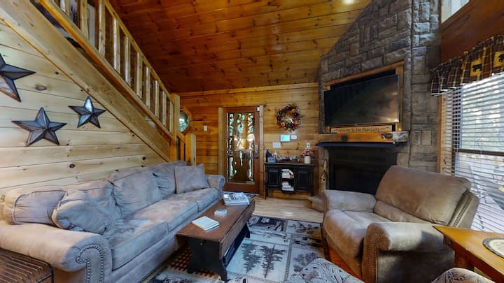 Nenechajte si ujsť Wuzzy's Flophouse, 2-spálňovú chatu s dostatkom priestoru, relaxačným vybavením a polosúkromnou atmosférou obklopenou stromami Smoky Mountain. Prečo je Wuzzy 's Flophouse ideálny pre páry? A čo vonkajšia vírivka, vnútorná masážna vaňa a sauna? Alebo veranda, ktorá ponúka viacero hojdacích stoličiek a sezónny výhľad na fajčiarov? Premeňte tento očarujúci zrub na obľúbený dovolenkový prenájom svojej rodiny s ďalším lôžkom pre priestor až pre 6 hostí. Vaše deti si tiež zamilujú podkrovie na poschodí s arkádovým systémom a samostatným televízorom. S príjemne zariadeným interiérom, priestrannými veľkosťami izieb a bonusovým vybavením má Wuzzy 's Flophouse presne to, čo potrebujete na ďalší romantický výlet alebo zábavnú dovolenku! Wuzzy 's Flophouse tiež poskytuje ľahký prístup k vašim obľúbeným atrakciám Pigeon Forge - mesto, ktoré je vzdialené necelých 9 míľ a národný park Great Smoky Mountains. Ale ak hľadáte zrub, ktorý pojme viac ako 4 osoby, Wuzzy's Flophouse je stále skvelou voľbou.