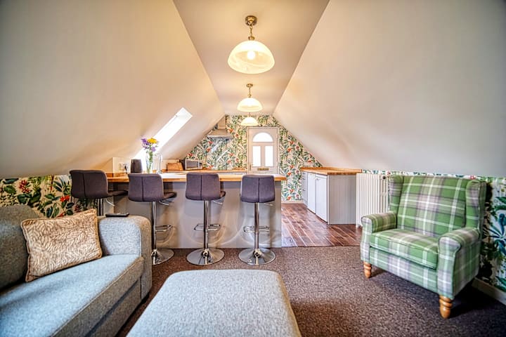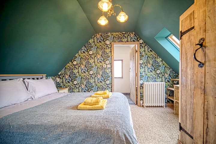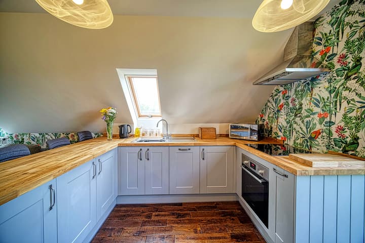 Samostatne stojaci Cartlodge s krásnym výhľadom na vidiek je nádherne umiestnený s peknou terasou s vonkajším stolom so slnečníkom a štyrmi stoličkami.