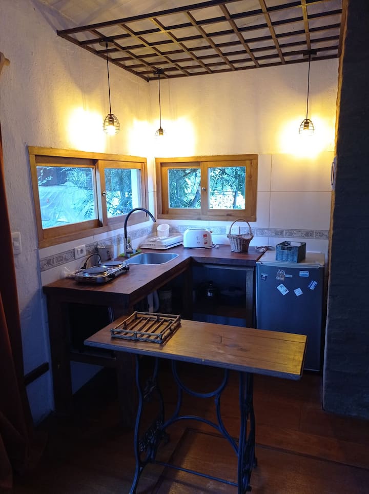 Teplá ekologická chata s jednou miestnosťou v škôlke.