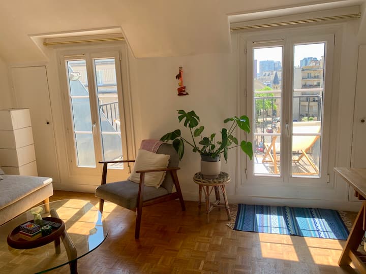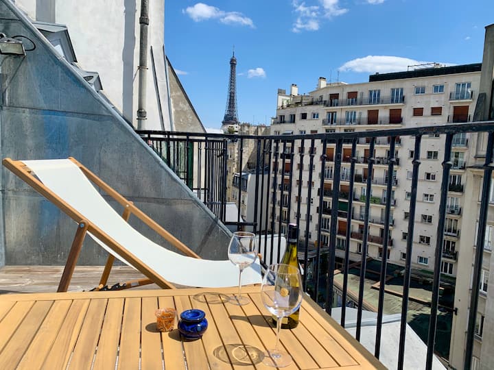 Slnečný apartmán s veľkým balkónom a výhľadom na Eiffelovu vežu