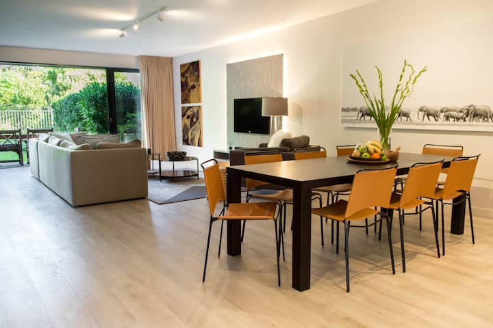 Srdcom apartmánu je veľkorysá, otvorená obývacia izba, ktorá vedie na exkluzívnu terasu a záhradu.