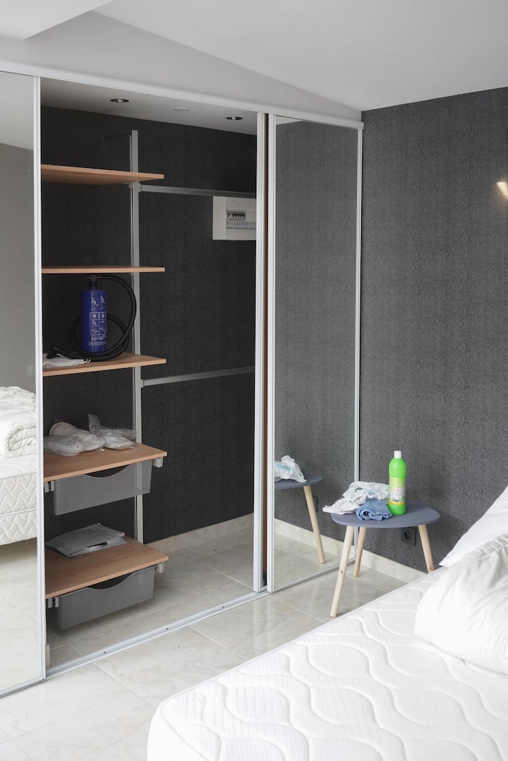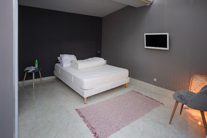 Izba s Wi-Fi, ktorá je vhodná na prácu.
